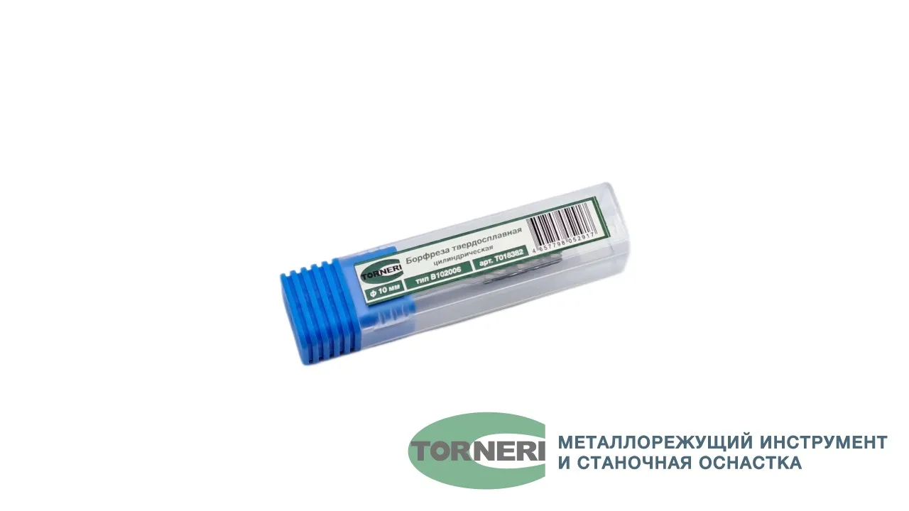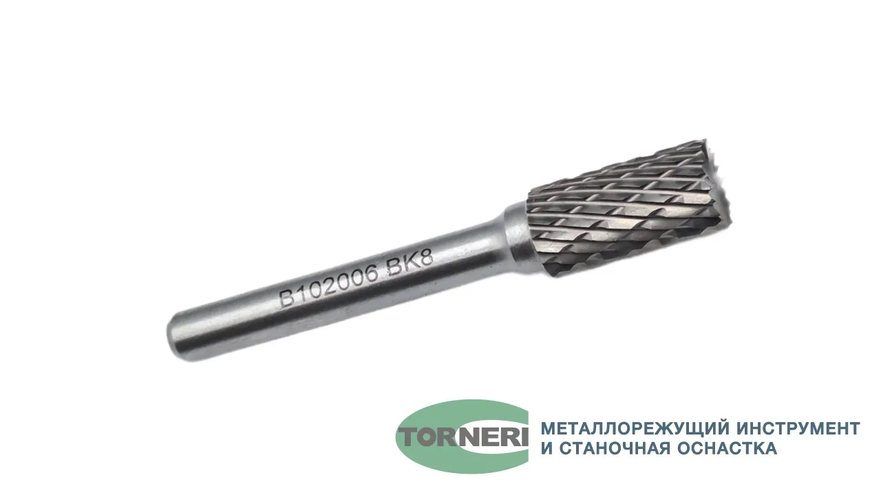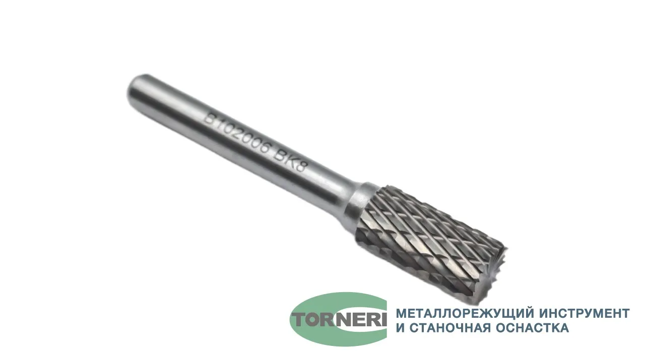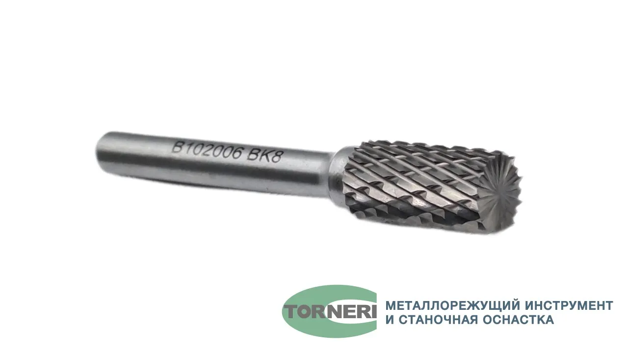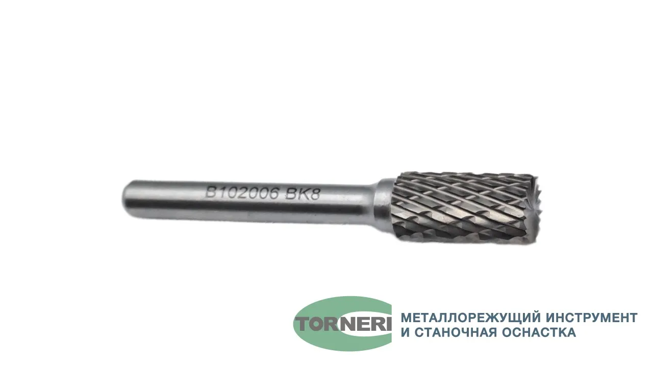 Борфреза твердосплавная тип В102006 (цилиндрическая), 10.0 мм, хвостовик 6 мм, торцевой зуб, двойная насечка