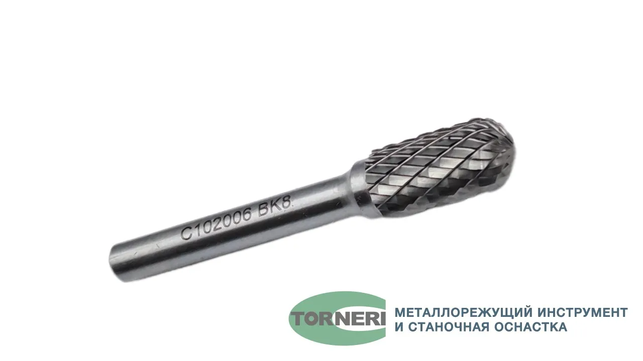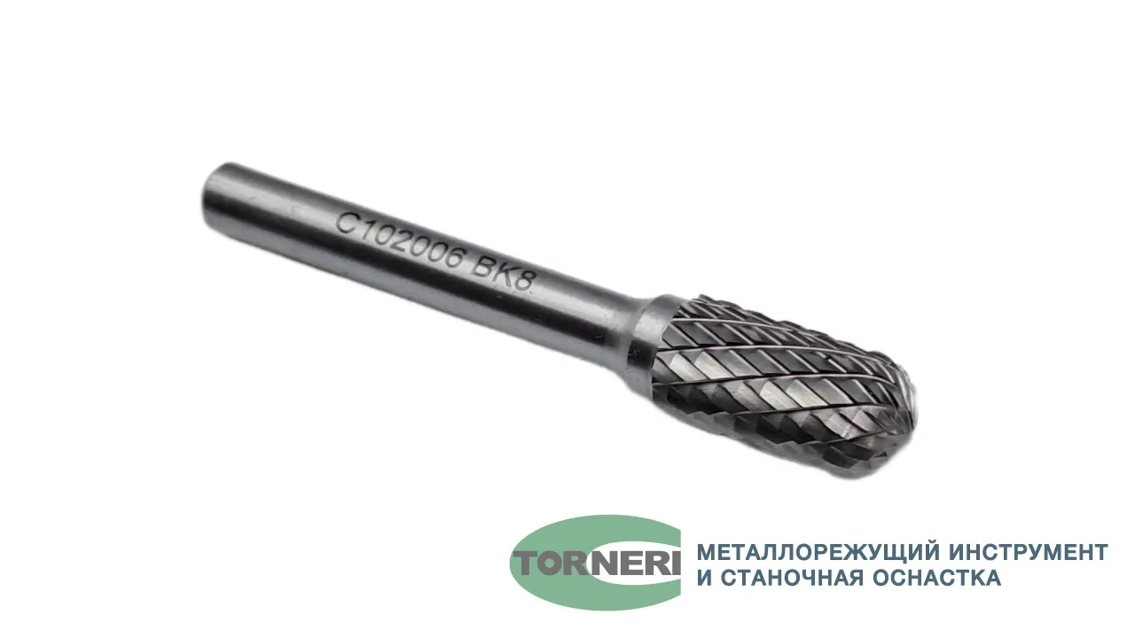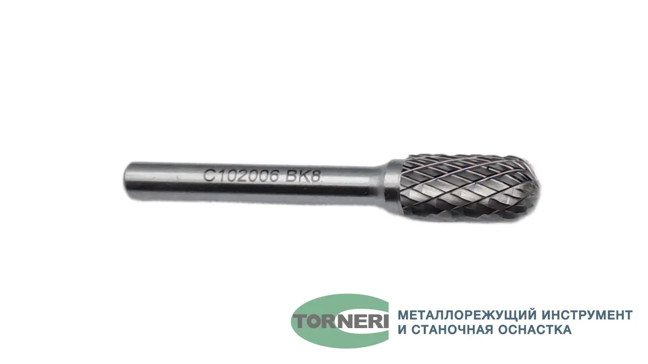 Борфреза твердосплавная тип C102006 (сфероцилиндрическая), 10.0 мм, хвостовик 6 мм, двойная насечка