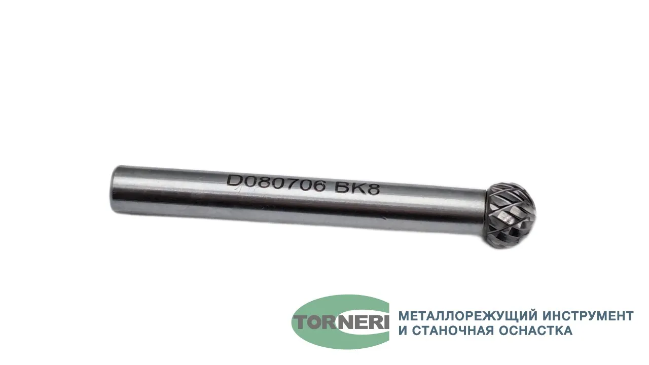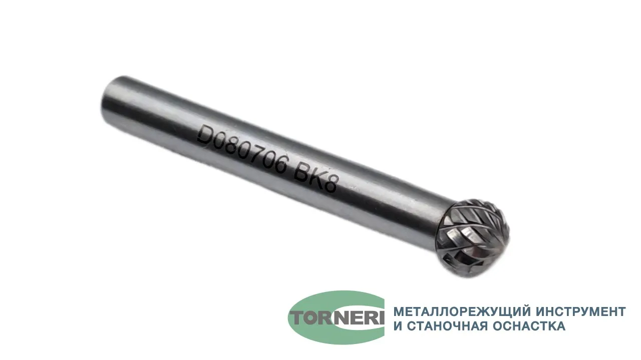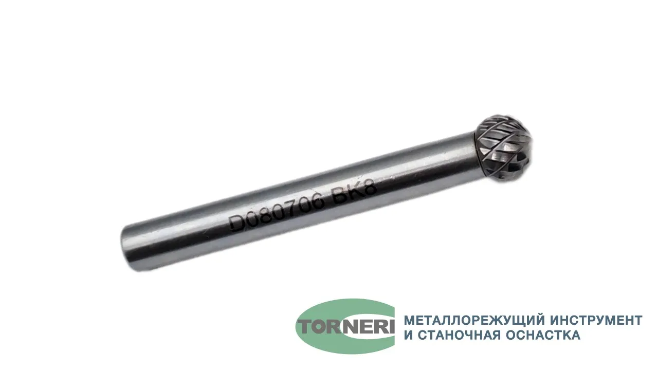 Борфреза твердосплавная тип D080706 (сферическая), 8.0 мм, хвостовик 6 мм, двойная насечка