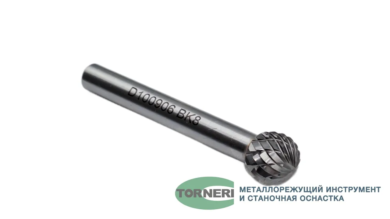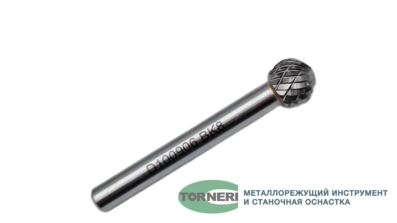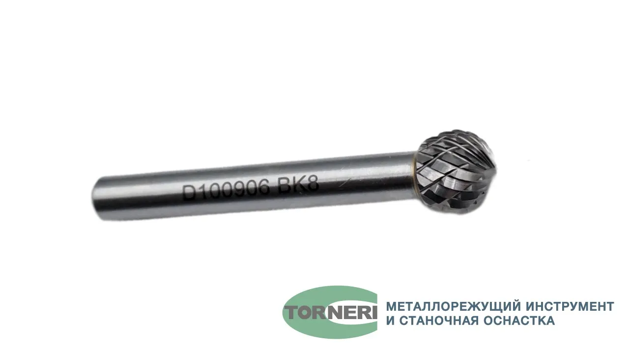 Борфреза твердосплавная тип D100906 (сферическая), 10.0 мм, хвостовик 6 мм, двойная насечка