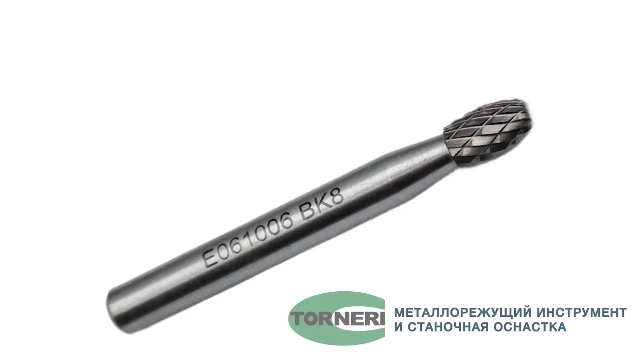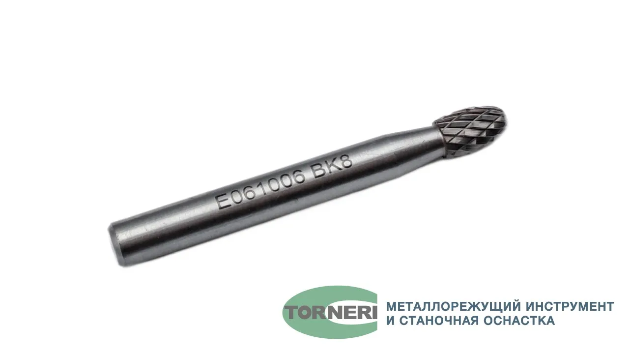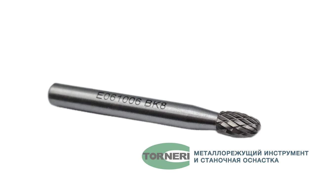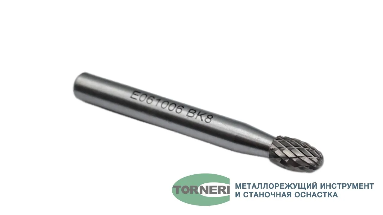 Борфреза твердосплавная тип E061006 (овальная), 6.0 мм, хвостовик 6 мм, двойная насечка