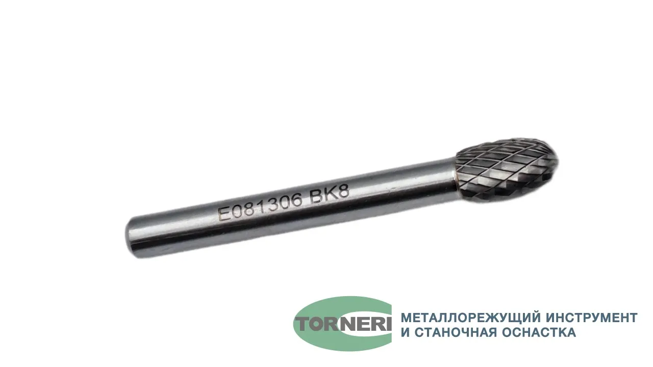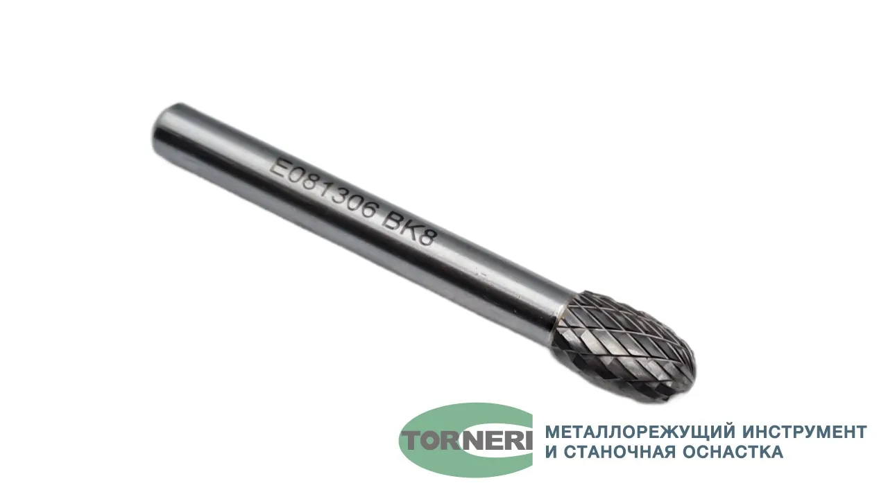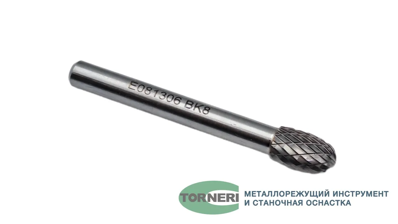 Борфреза твердосплавная тип E081306 (овальная), 8.0 мм, хвостовик 6 мм, двойная насечка