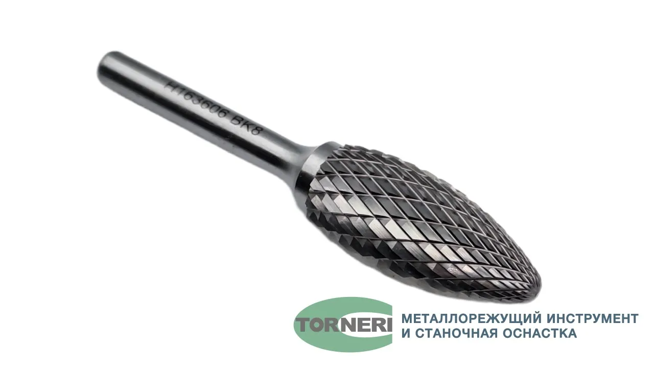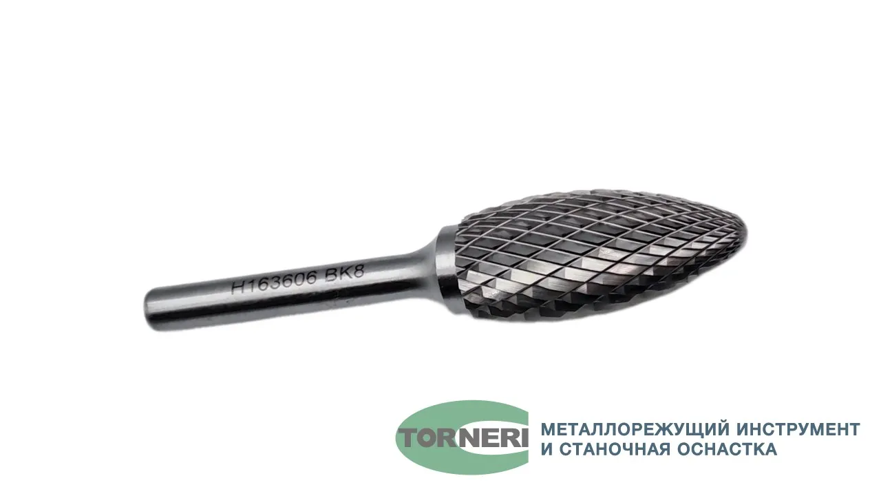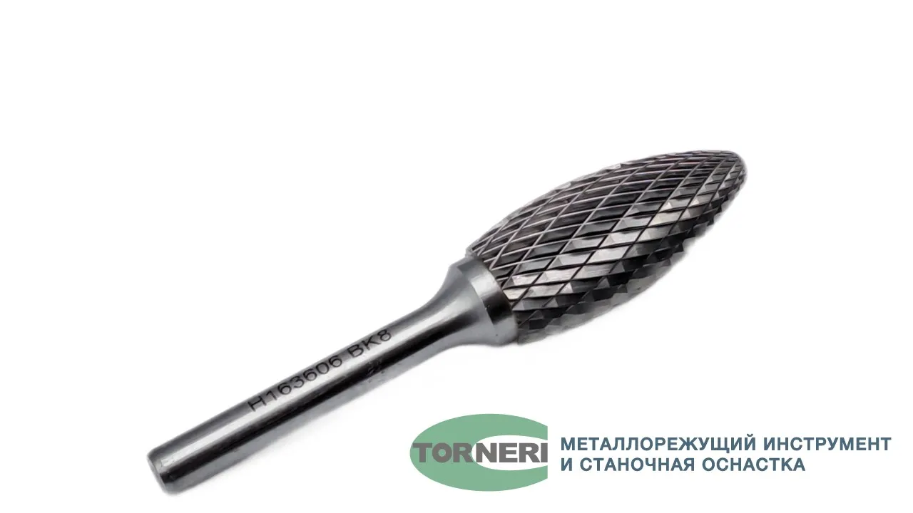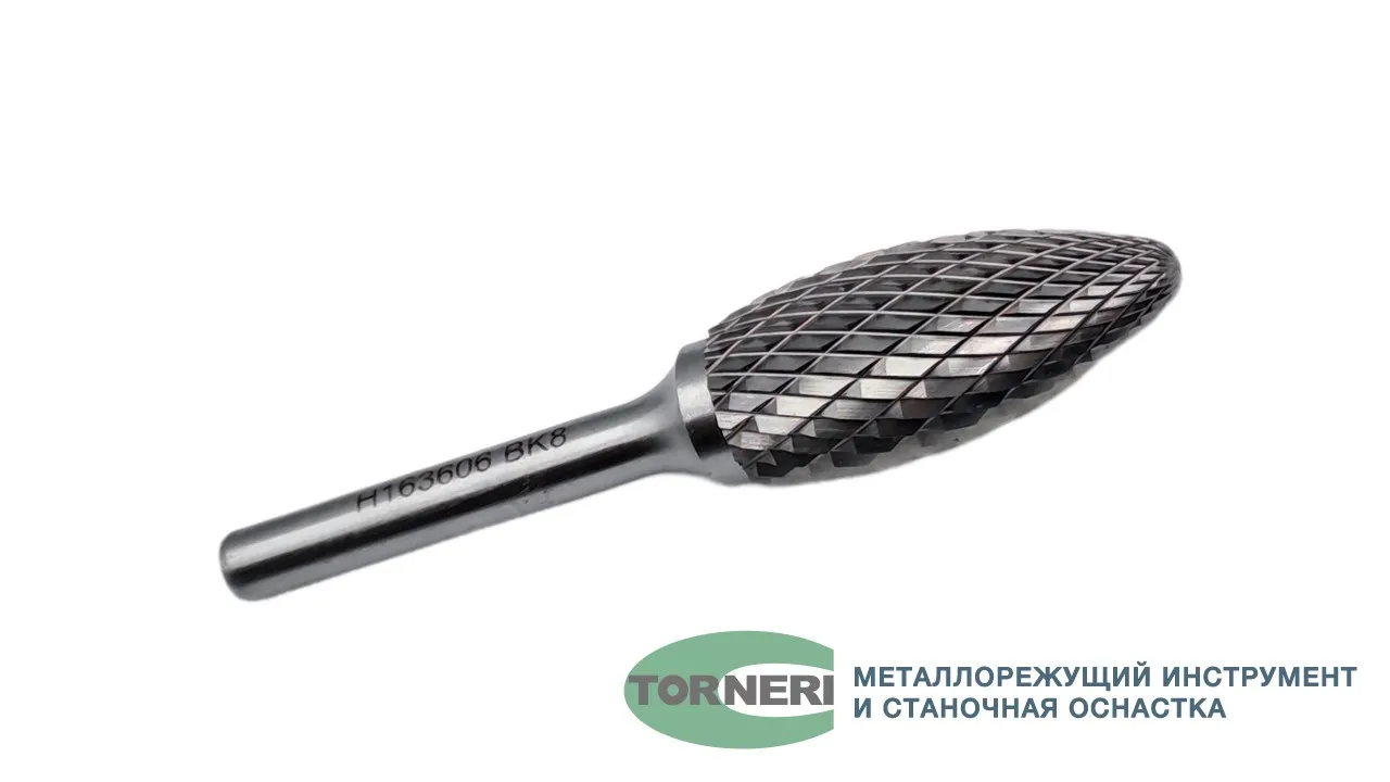 Борфреза твердосплавная тип Н163606 (пламевидная), 16.0 мм, хвостовик 6 мм, двойная насечка