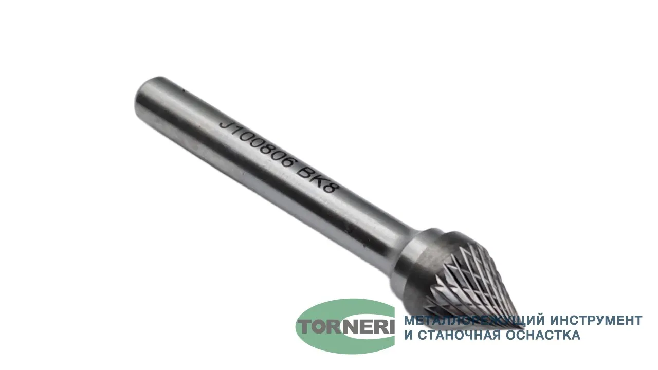 Борфреза твердосплавная тип J100806 (коническая), 10.0 мм, хвостовик 6 мм, двойная насечка