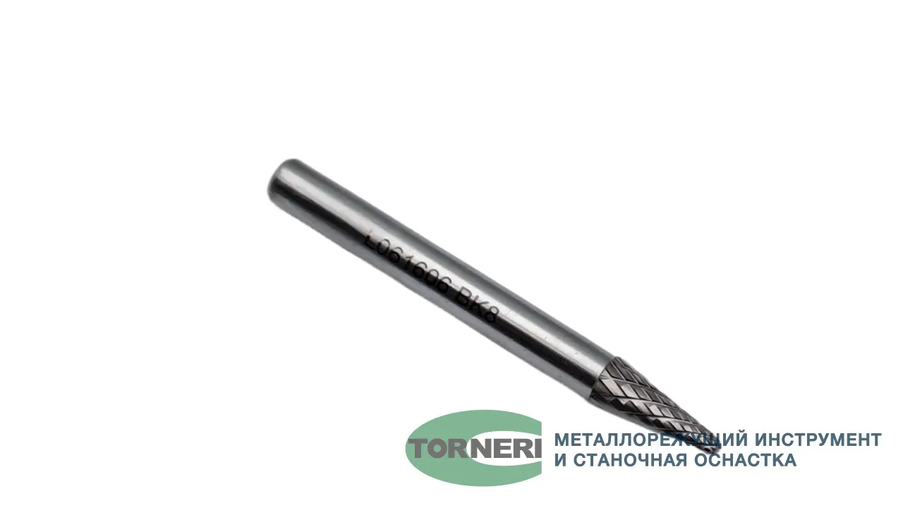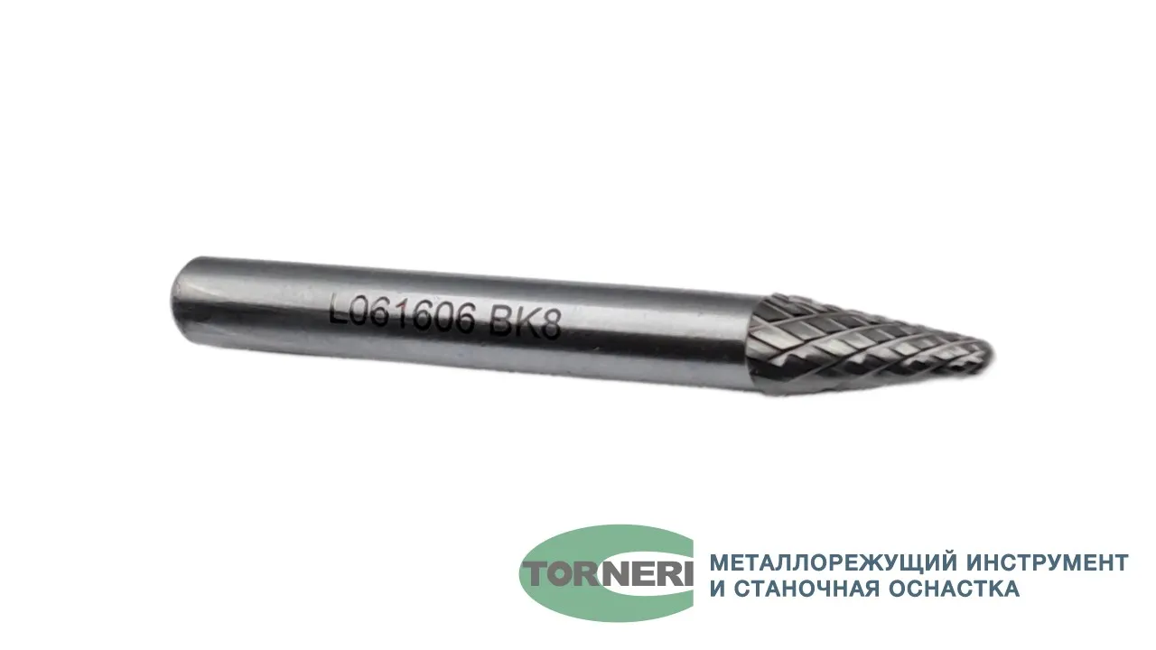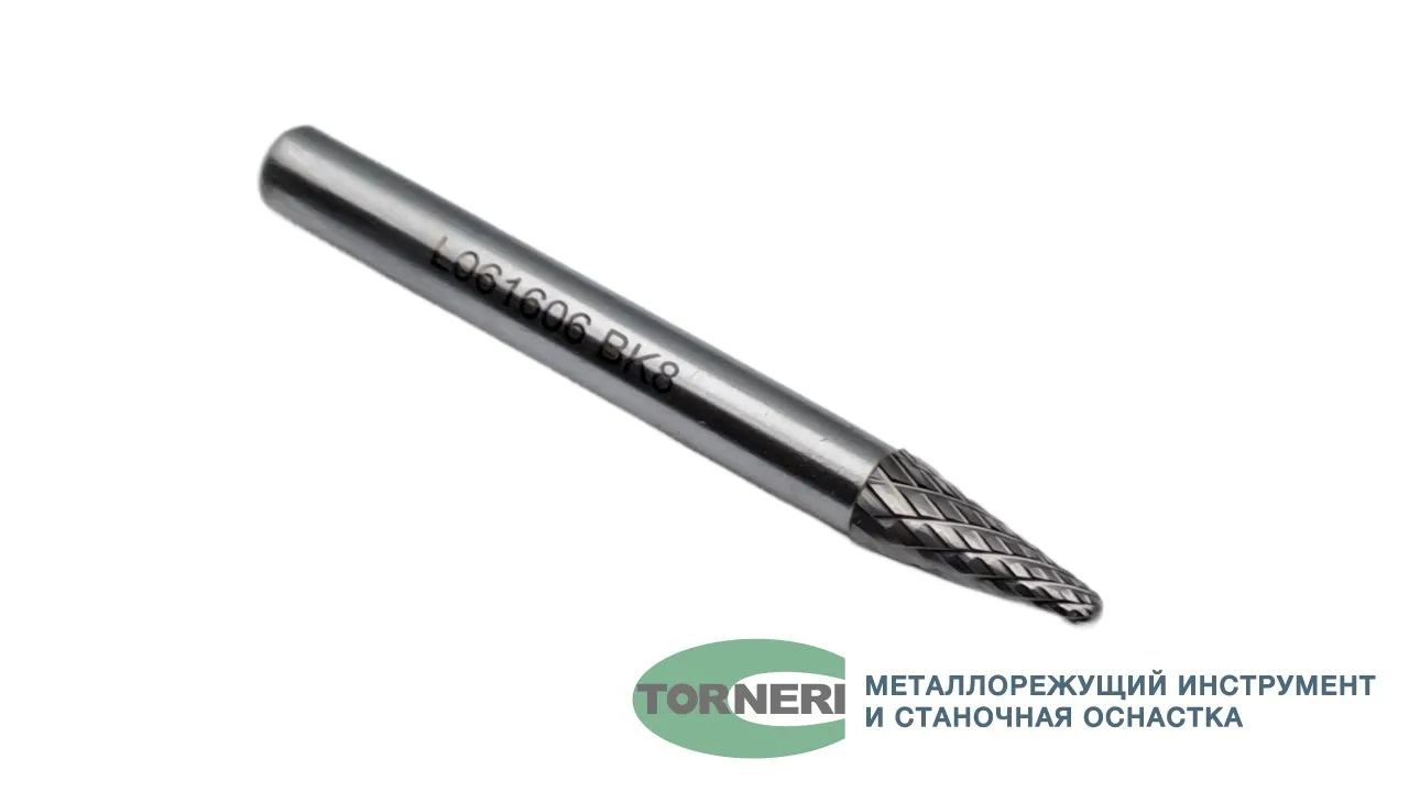 Борфреза твердосплавная тип L061606 (коническая с закругленным концом), 6.0 мм, хвостовик 6 мм, двойная насечка