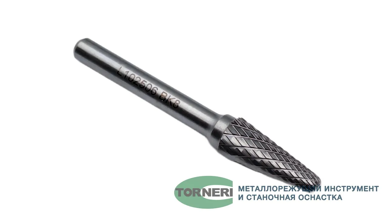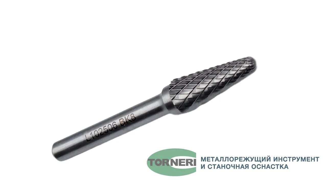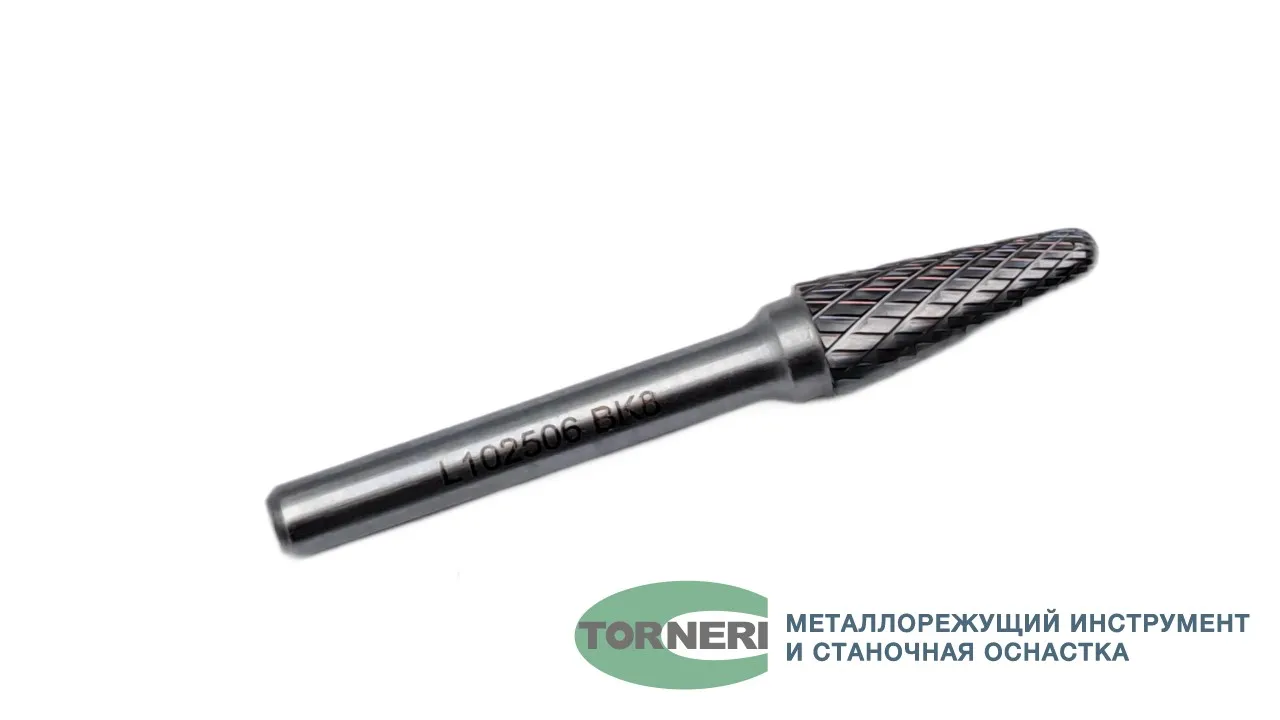 Борфреза твердосплавная тип L102506 (коническая с закругленным концом), 10.0 мм, хвостовик 6 мм, двойная насечка