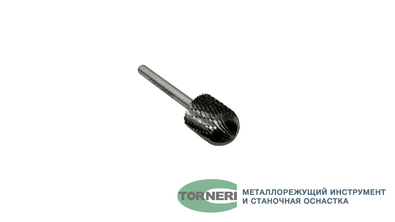 Борфреза твердосплавная тип C202506 (сфероцилиндрическая), 20.0 мм, хвостовик 6 мм, двойная насечка