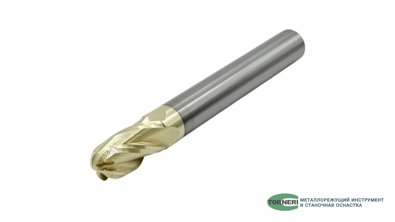 Фреза сферическая твердосплавная ц/х ф 6.0х12х75 мм z=4 по нержавеющей стали и титану, с покрытием ZrN, HRC 68