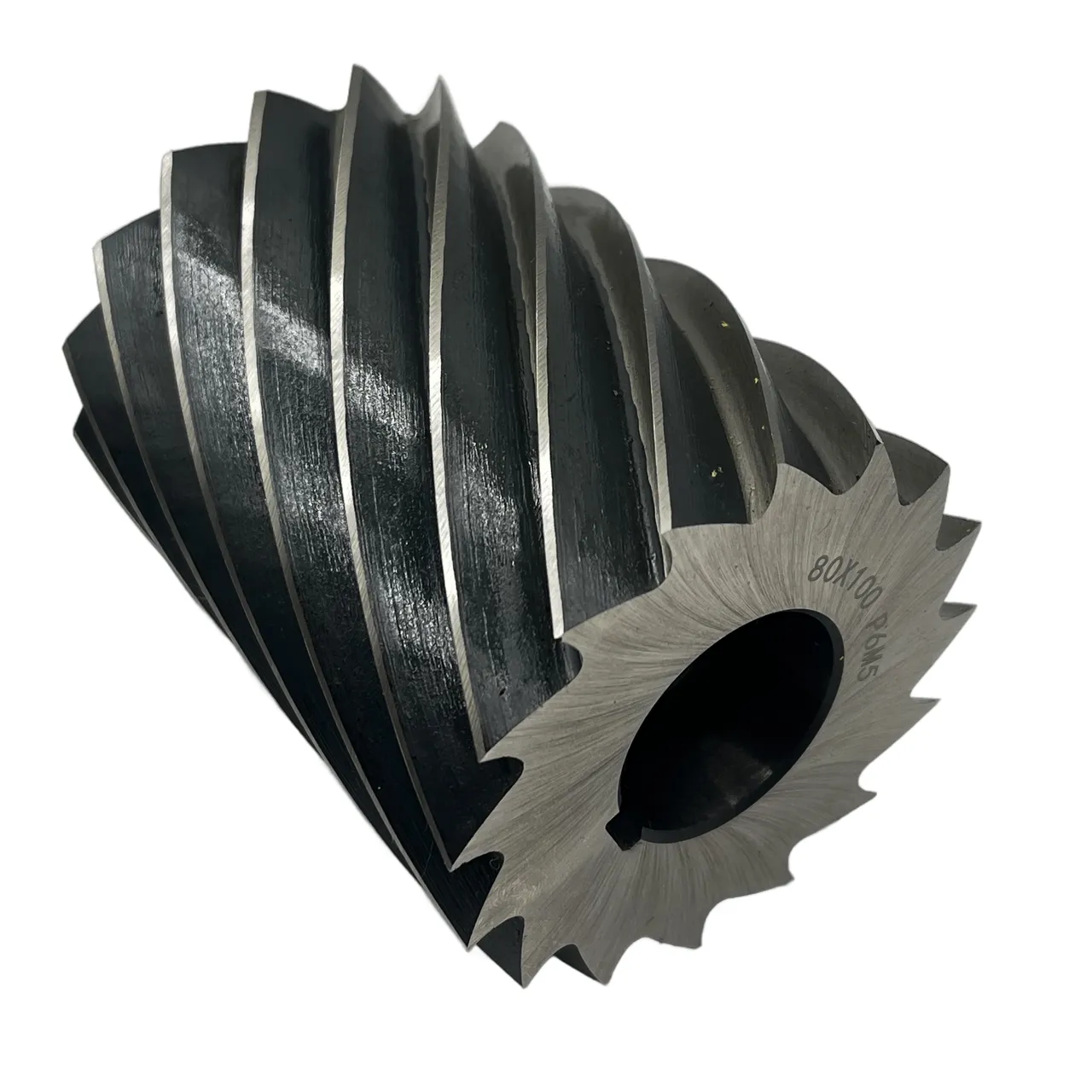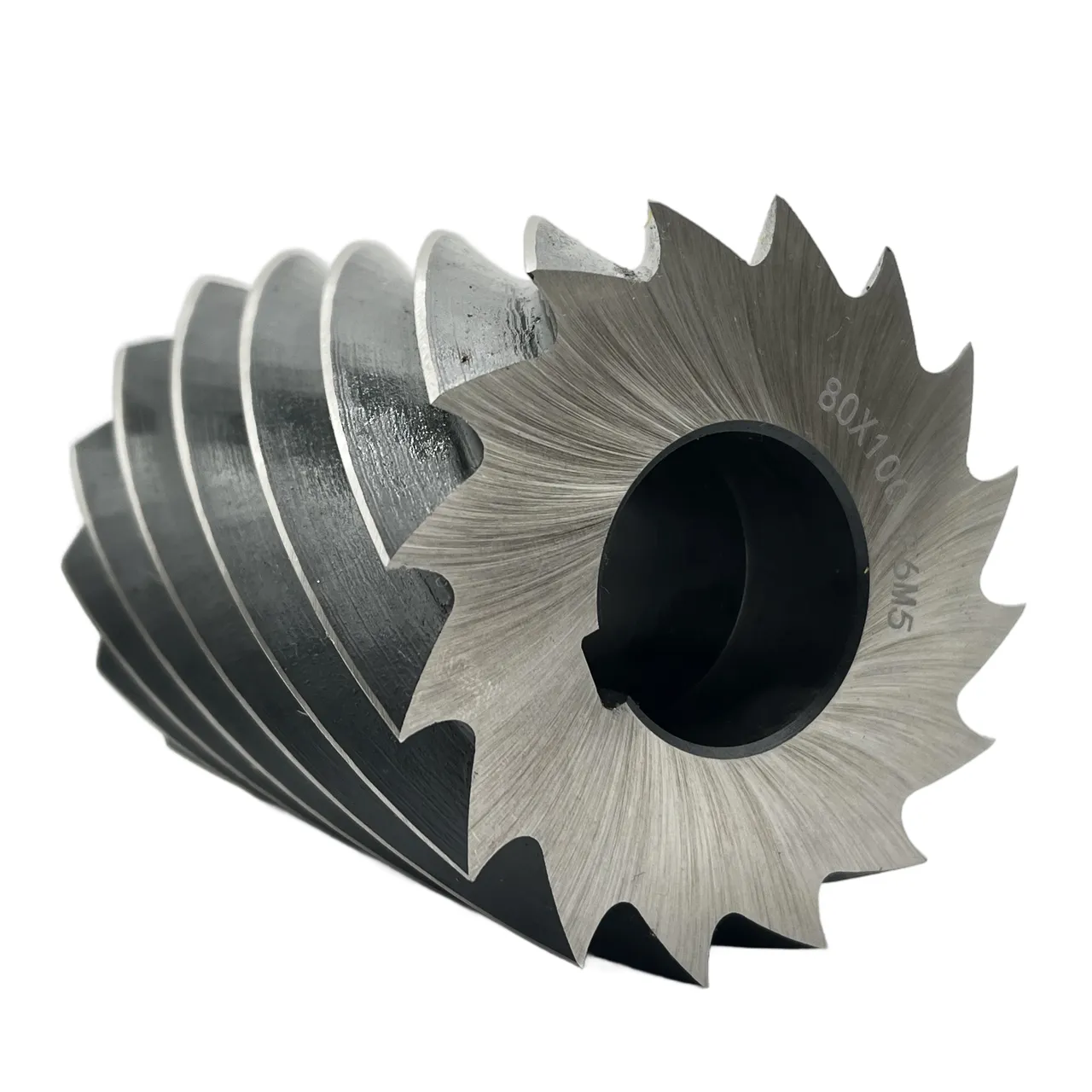 Сталь Р6М5 известна своей отличной износостойкостью и способностью сохранять режущие свойства при высоких температурах, что делает эту фрезу идеальным выбором для обработки различных металлов, включая стали и сплавы. Зубья фрезы расположены по винтовой линии с определенным углом наклона винтовой канавки, что способствует снижению колебаний сил резания.