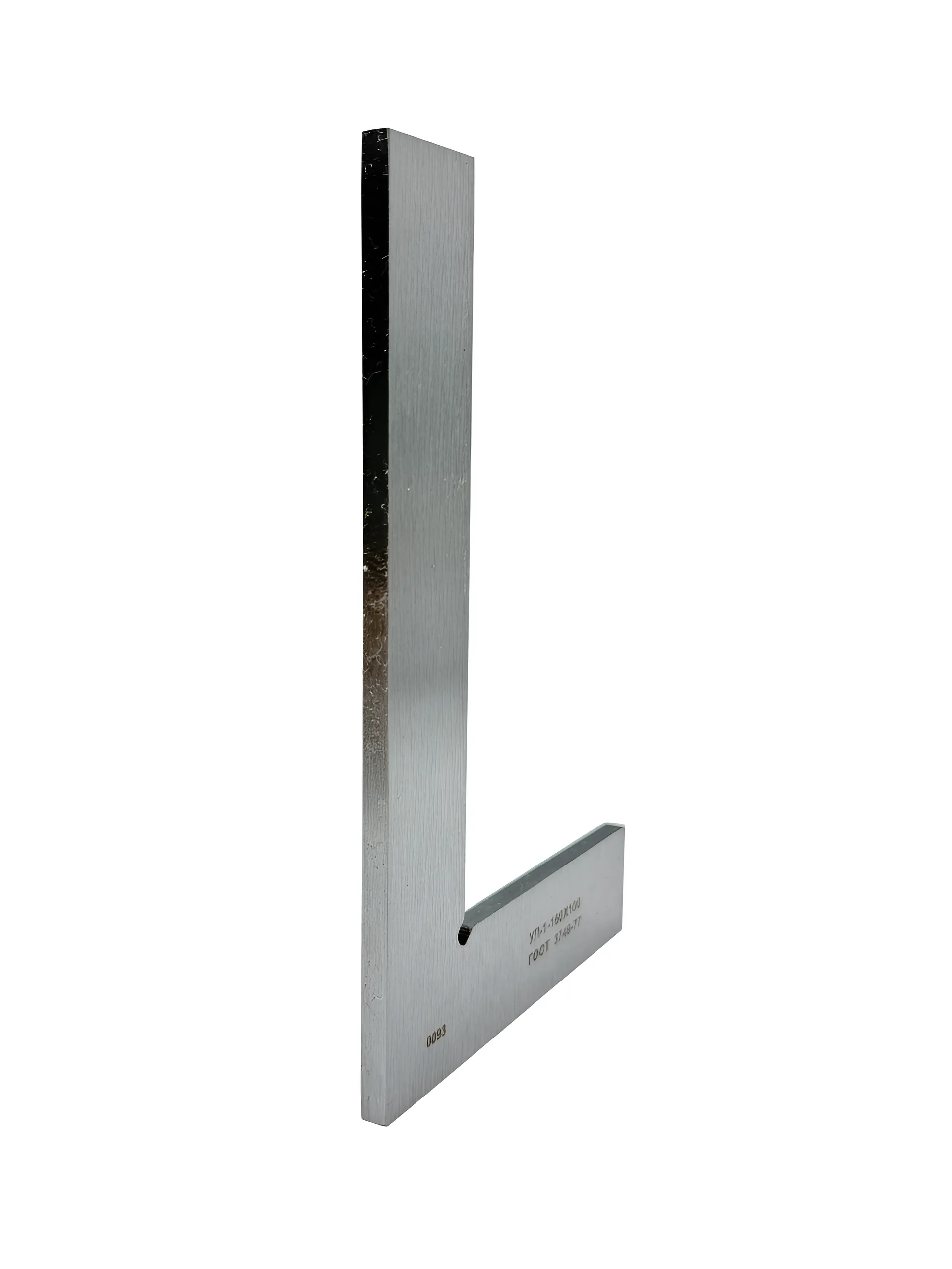 Изготовленный из прочного материала, угольник представляет собой цельную гладкую деталь с идеально ровными плоскими поверхностями, соединенными под углом 90°. Это обеспечивает высокую степень точности при измерениях и разметке. Как внутренние, так и внешние углы инструмента являются рабочими, что позволяет использовать его для проверки углов различных деталей.
