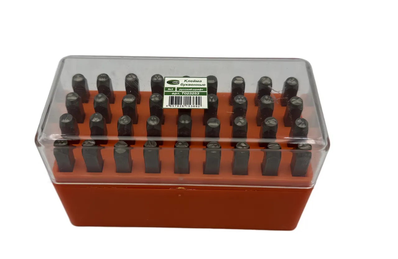 Клейма буквенные №3 русский шрифт бренда TORNERI – это профессиональный набор для маркировки различных материалов, таких как металл, дерево, пластик, кожа и текстиль.