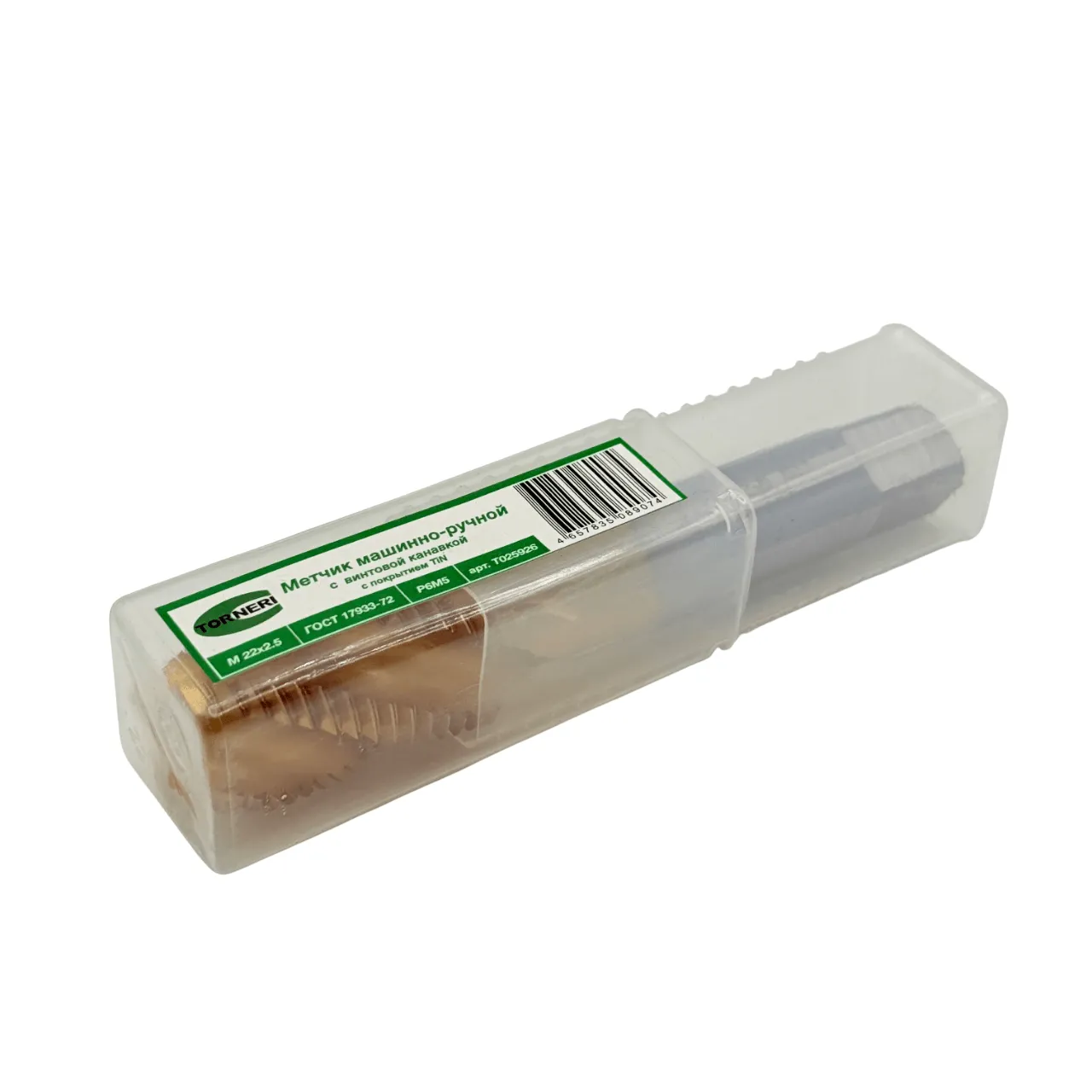 Метчик машинно-ручной М 22х2.5 Р6М5 ГОСТ 17933-72 с винтовой канавкой с покрытием TiN