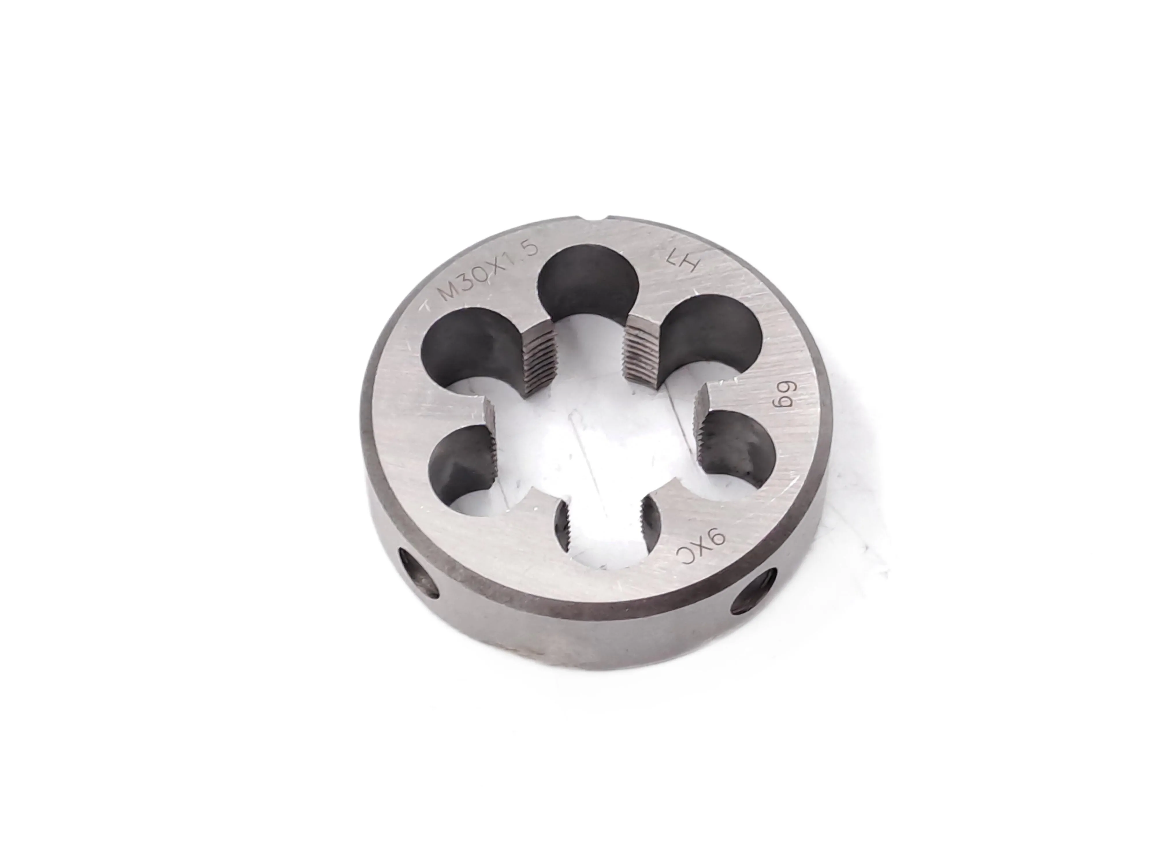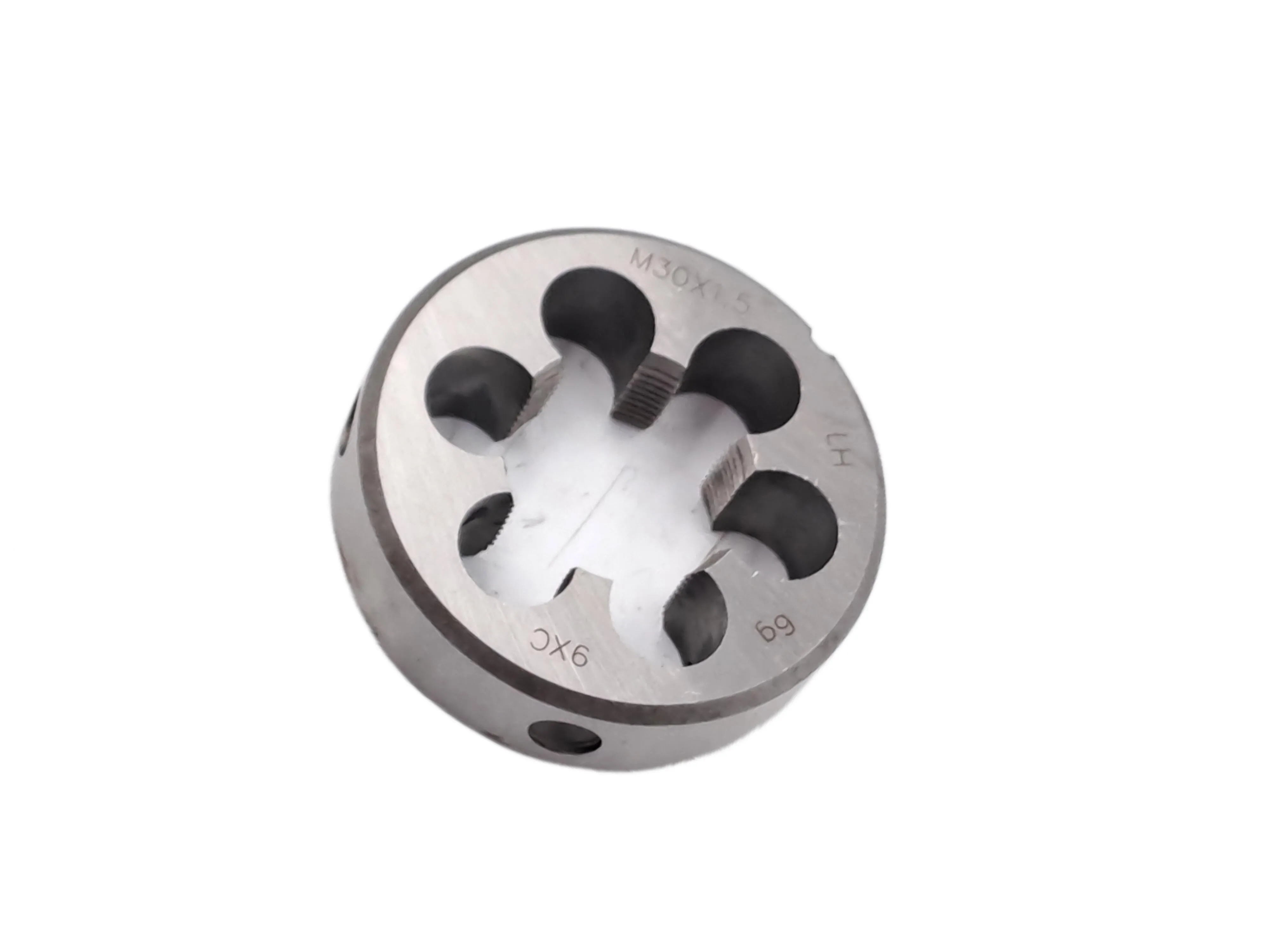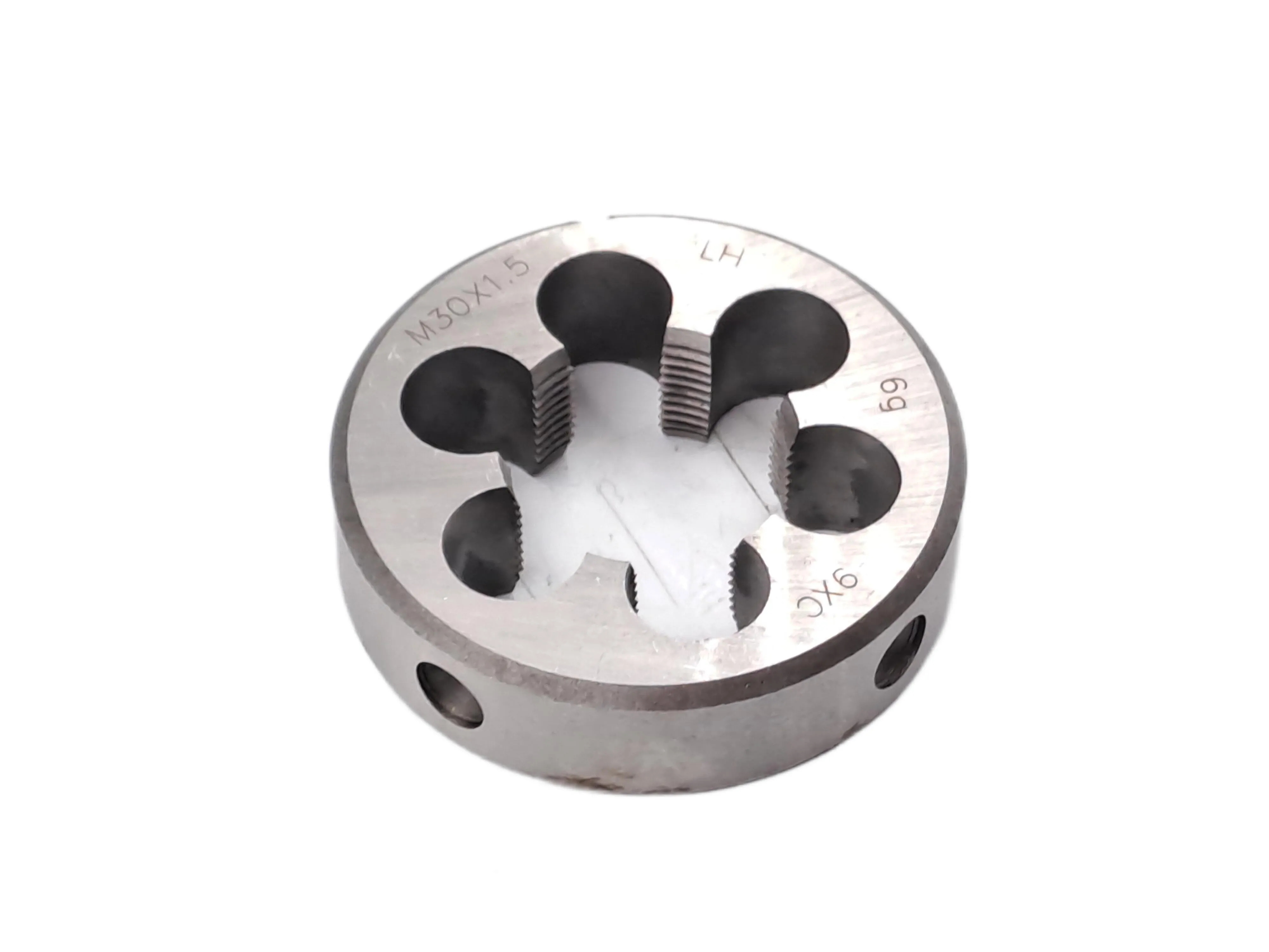 Плашка М30×1,5 LH левая предназначена для нарезания, восстановления и калибровки наружной левой резьбы на стальных заготовках с цилиндрической поверхностью. Угол профиля составляет 60, что соответствует стандарту метрической резьбы.