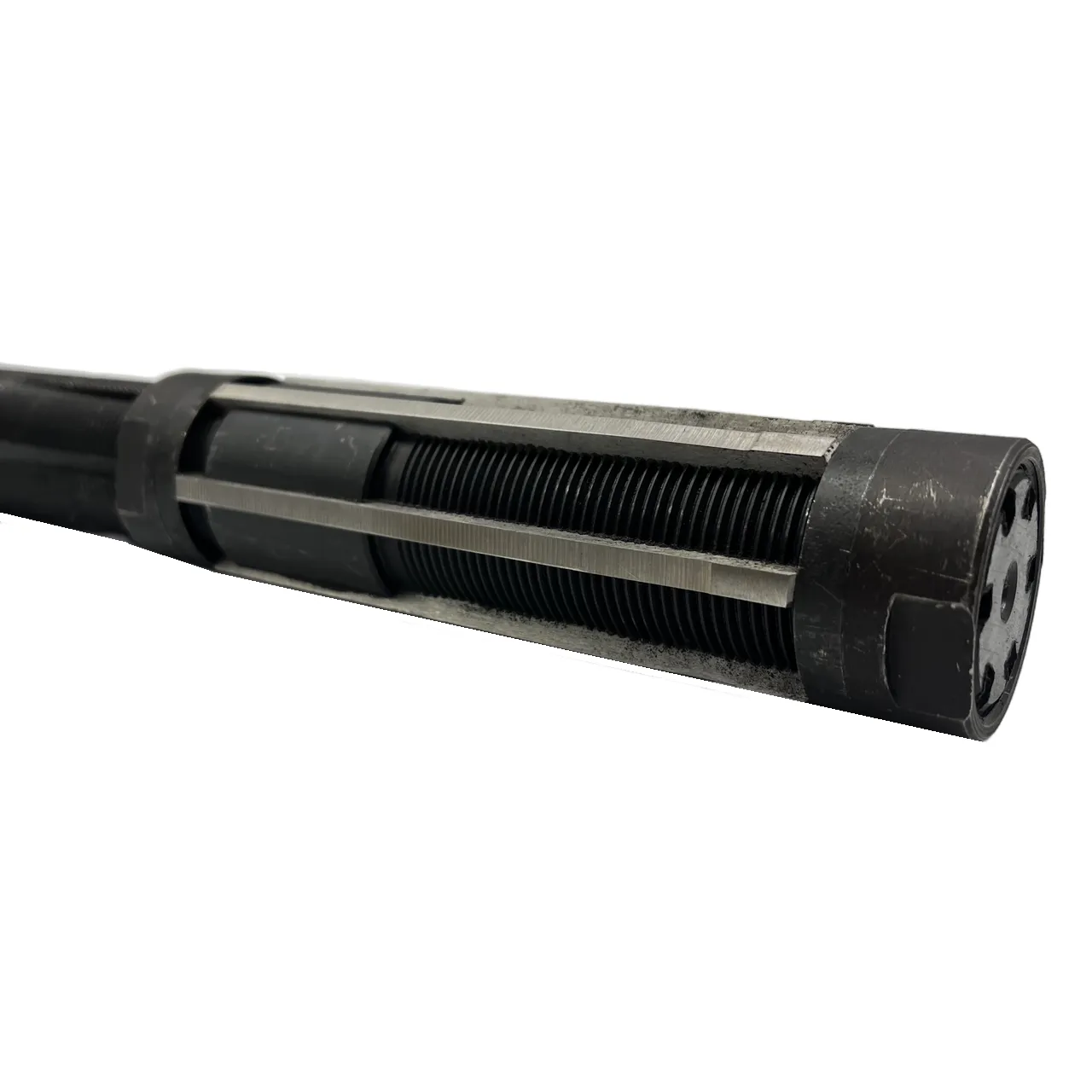 Регулируемый диаметр: Диаметр развертки можно изменять в диапазоне от 44 до 54 мм, что позволяет адаптировать инструмент под конкретные размеры отверстий и требования к обработке. Регулировка диаметра производится с помощью обычного гаечного ключа. Для этого необходимо открутить верхнюю гайку и отрегулировать нижнюю, что позволяет быстро и удобно изменять размер.