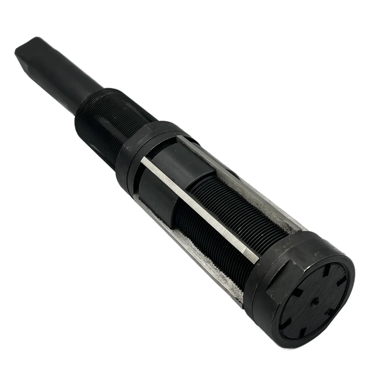 Регулируемый диаметр: Диаметр развертки можно изменять в диапазоне от 64 до 74 мм, что позволяет адаптировать инструмент под конкретные размеры отверстий и требования к обработке. Регулировка диаметра производится с помощью обычного гаечного ключа. Для этого необходимо открутить верхнюю гайку и отрегулировать нижнюю, что позволяет быстро и удобно изменять размер.