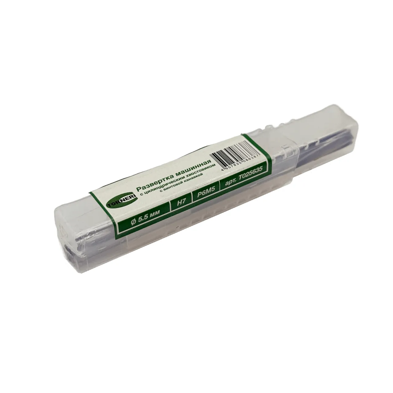Развёртка машинная цилиндрическая диаметром 5.5 мм класса точности H7 изготовлена из быстрорежущей стали марки P6M5 и оснащена винтовой канавкой для эффективного удаления стружки при обработке отверстий. Данный инструмент предназначен для чистового растачивания отверстий в деталях из различных материалов, обеспечивая высокую точность размеров и чистоту поверхности обработанного отверстия.