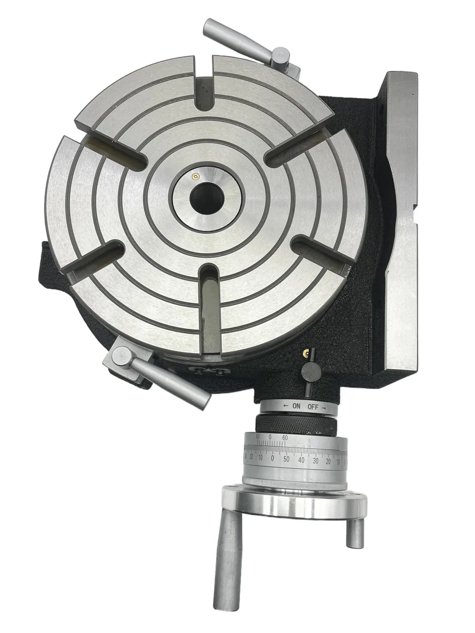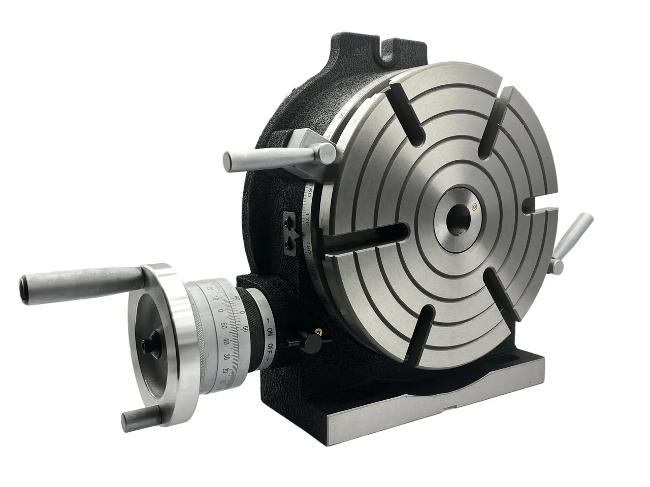 Стол поворотный горизонтально-вертикальный TSL 250 мм (HV-10") представляет собой высокотехнологичное установочное устройство, предназначенное для выполнения разнообразных машинных операций. Этот стол идеально подходит для деления, кругового резания, установки углов, расточки и локальной обработки, что делает его незаменимым инструментом в арсенале фрезерных станков.