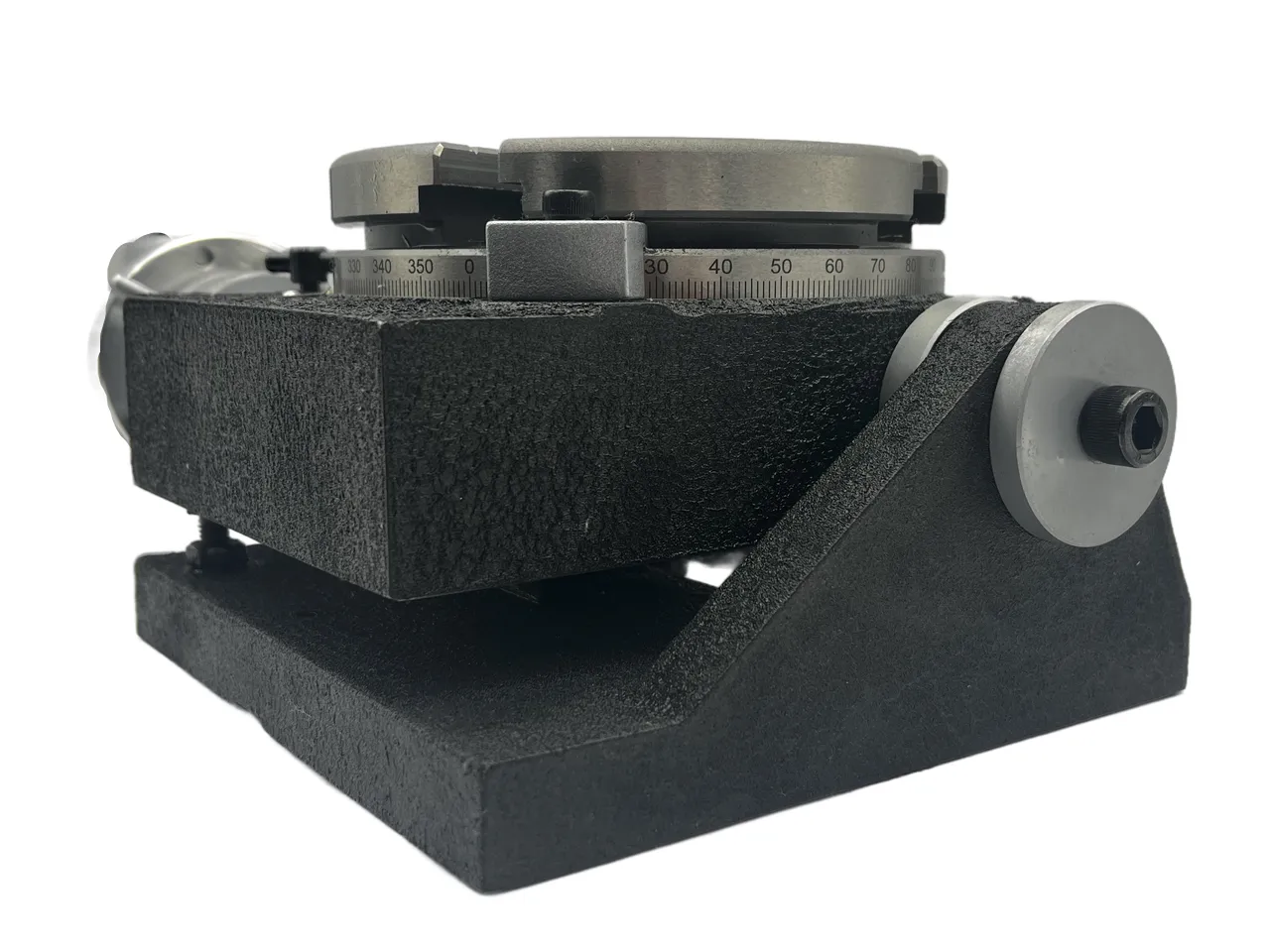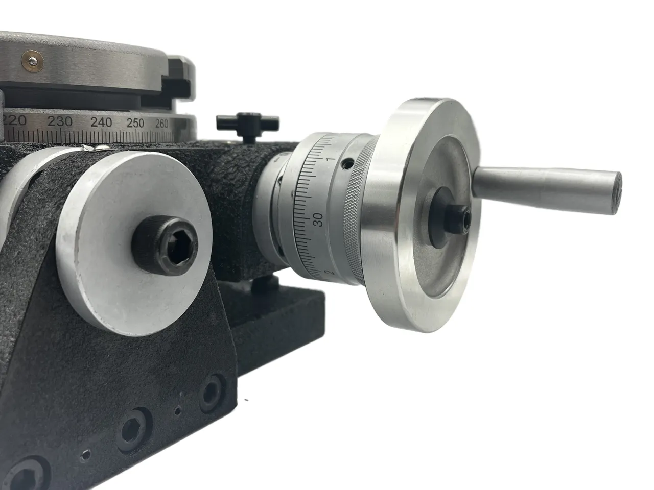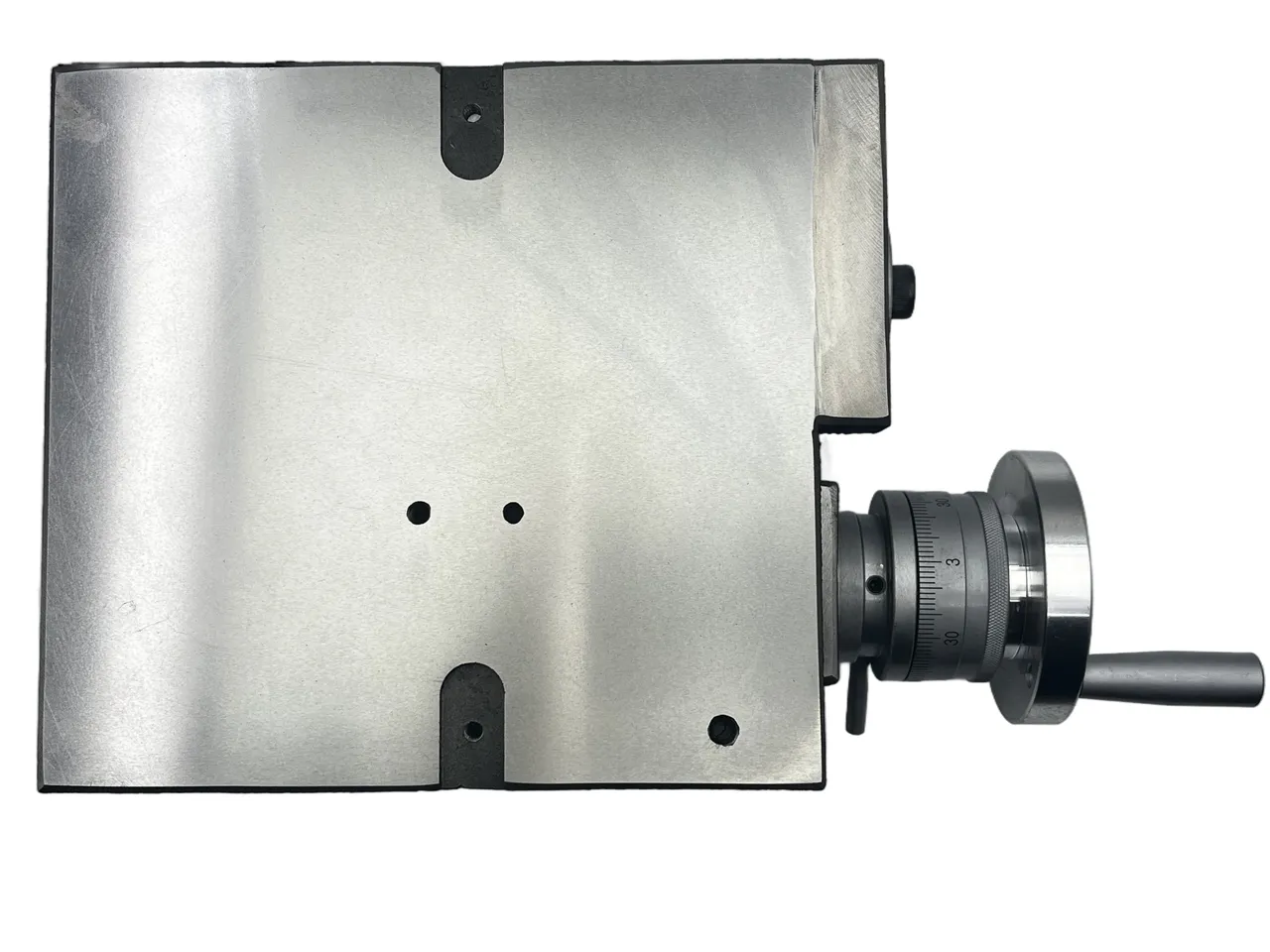 Основание стола оснащено специальными пазами и опорными поверхностями, что обеспечивает надежное крепление к столу станка с помощью прижимов. На поверхности планшайбы предусмотрены радиальные Т-образные пазы для размещения крепежных устройств, а центральное отверстие позволяет установить инструмент со стандартным коническим хвостовиком КМ(конус Морзе).